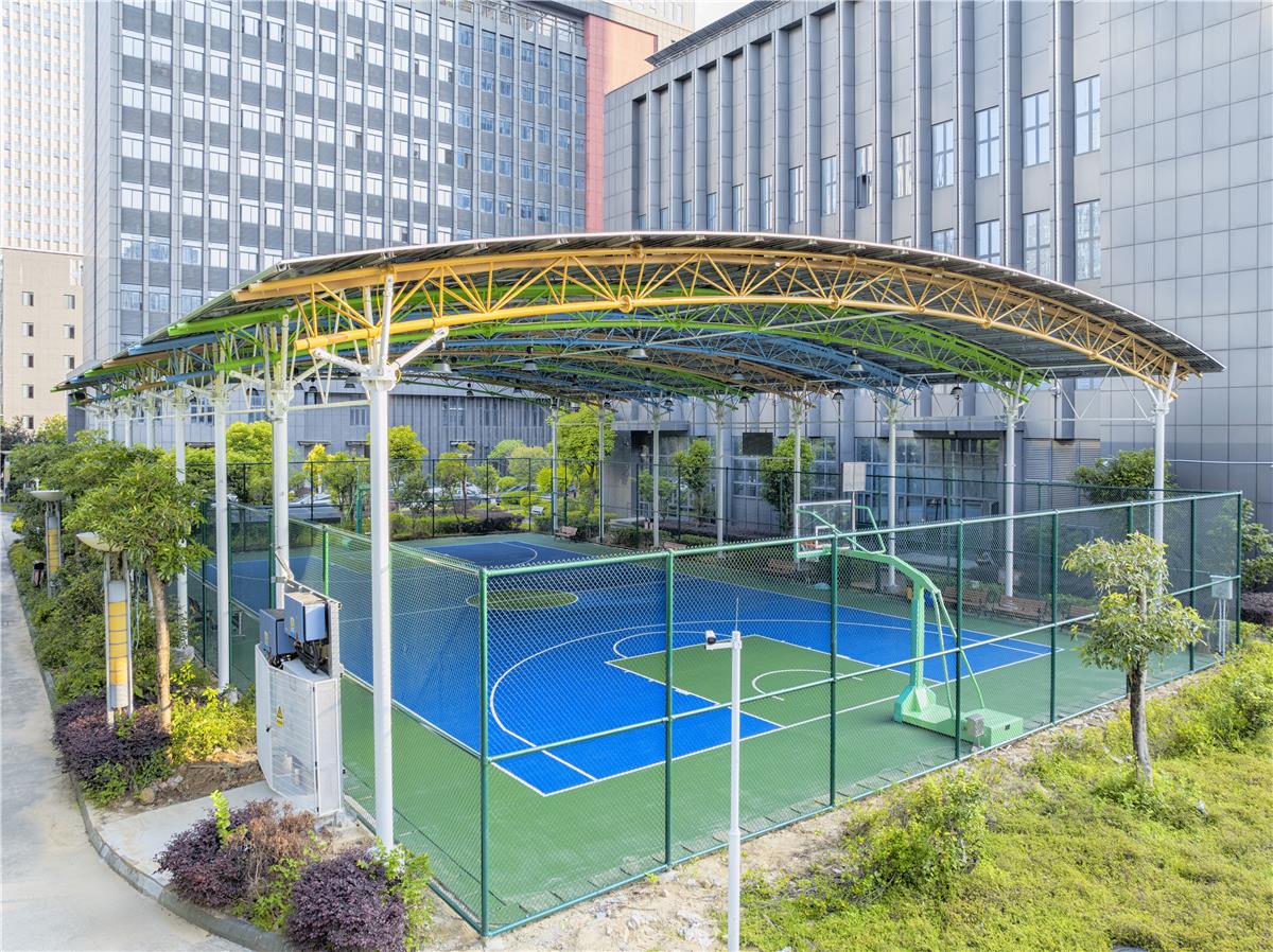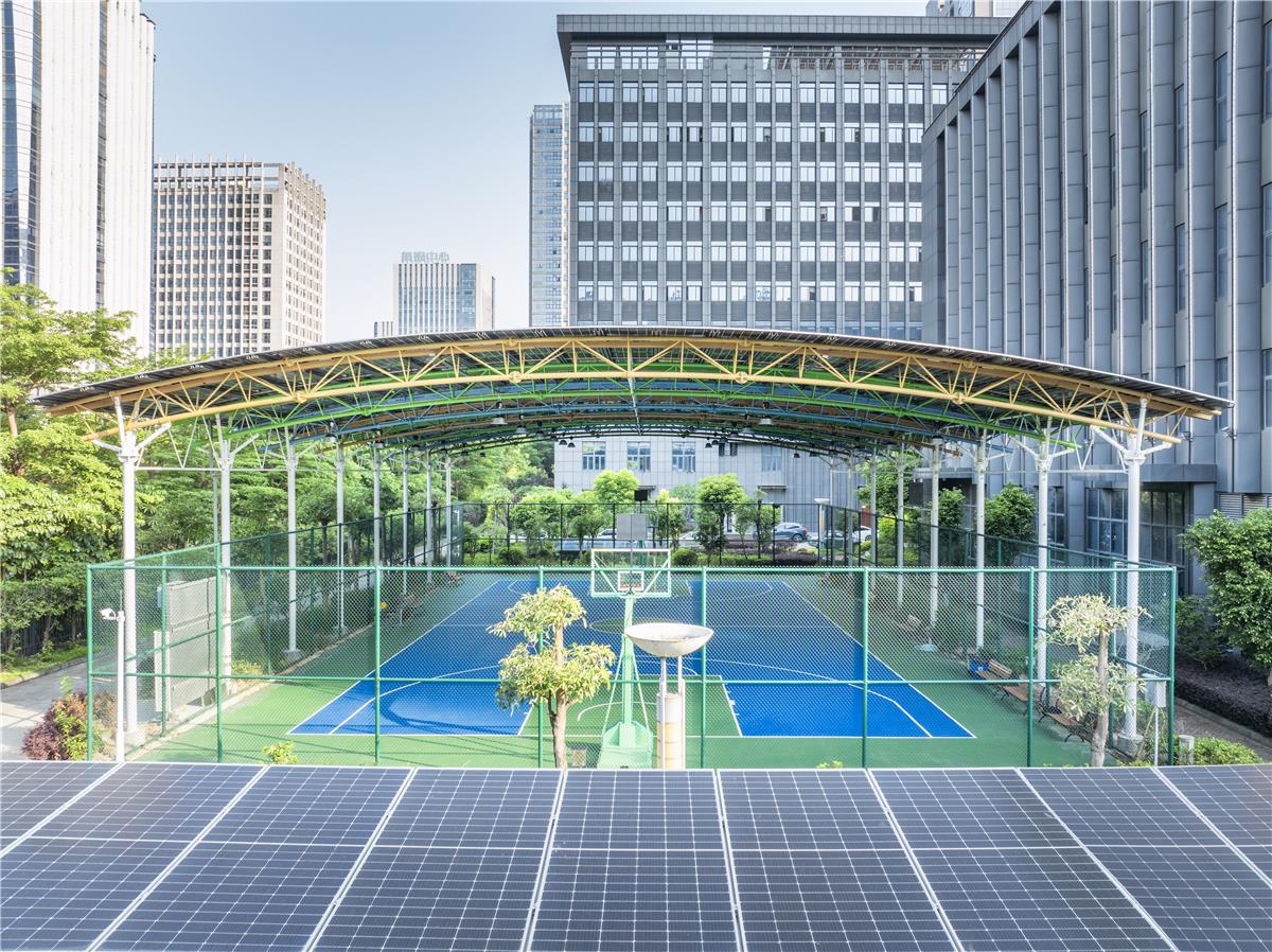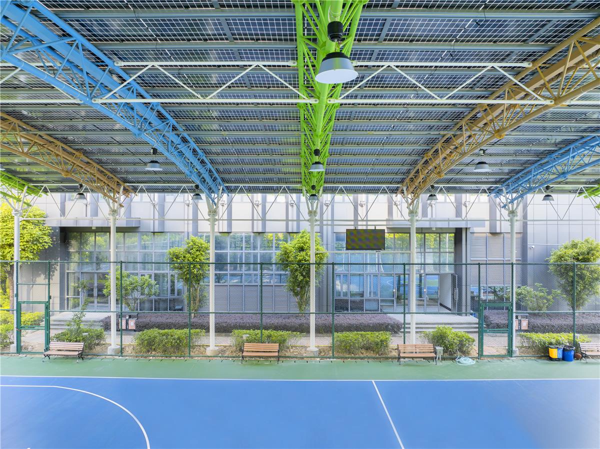 电站设计方面,球场采用行业首创三维曲线造型管桁架结构,弧形穹顶经过精准计算与拼装,从远处望去如彩虹横跨园区,既传递着阳光活力的体育精神,又以现代感十足的外观成为企业园区的标志性景观。这种将工业美学与运动场景结合的设计,打破了传统运动场地的刻板印象。