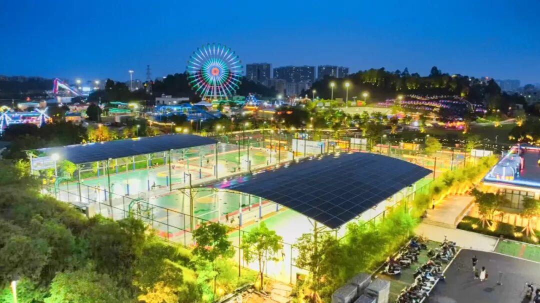 永福绿能光伏篮球场产品,是一款适用于户外篮球场的创新型光伏电站产品,产品挑高、跨距、纵深均符合国际篮联(FIBA)篮球场标准,已广泛应用于企业园区、体育公园、校园、乡村等场景,为用户带来夏季降温、隔热防雨、夜间照明、发电增收、保护场地等实用性体验。